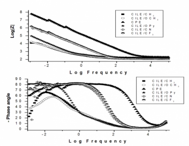 Determinación del comportamiento eléctrico de electrodos de pasta de carbono modificados con líquidos iónicos (CILE) derivados del N-octil piridinio modificados con sustituyentes en la posición para del anillo piridinico, con anión hexafluorofosfato. Efecto del sustituyente.